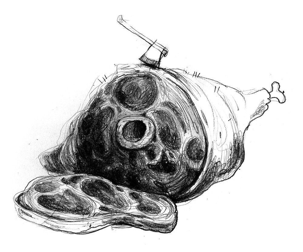 Haragos morgás töri meg a csámcsogást. Az egyik falusi próbál erővel kitépni társa kezéből egy malomkerék méretű sonkaszeletet. A veszekedés verekedéssé fajul, majd mások is beszállnak, hogy rendet tegyenek a vitában. Egyre többen esnek így egymásnak: először csak lökdösődnek, aztán ütik és rúgják, majd zúzzák, törik, szúrják és vágják egymást. Az arcokon ugyanaz a téboly ül, mint a hajdani disznóén. Téged is megtámad némelyik őrült paraszt, de semmi esélyük arra, hogy ártsanak neked. Egymásra viszont annál veszélyesebbek. A disznótor embertorba torkollik. Az utolsó túlélő, rádöbbenve, mit tett, azonnal kést szúr a saját torkába.